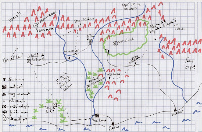 I aquest és el meu melting-pot: un barrig-barreig de tots els manuals de fantasia medieval que m’agraden, posats sobre un mapa fet a mà i disponible per a aquelles aventures que es vulguin dur a terme. En ell hi ha ciutats plenes de trames com Freeport, enormes cataus a explorar com l’Abisme de la Gola de la Serp o enclavaments que es remunten als meus orígens com a rolero com les Coves del Caos….